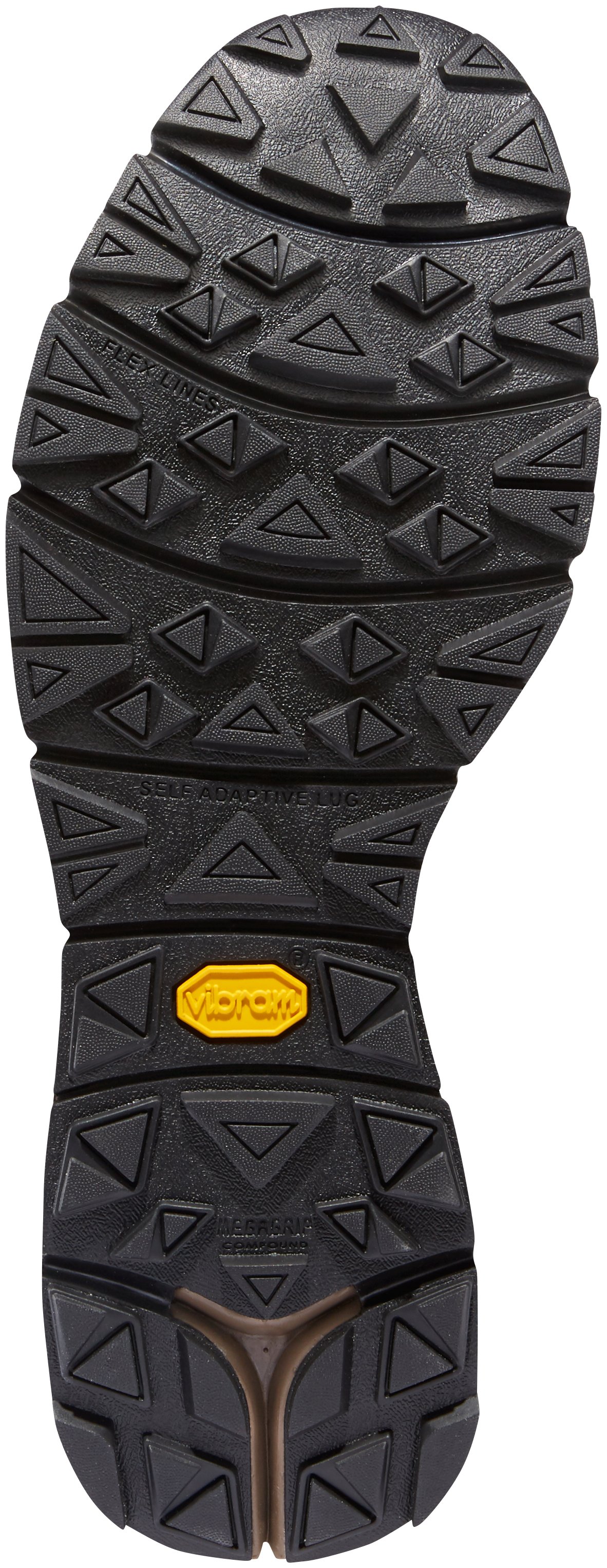 - With its self-adapting lugs and specially formulated Megagrip compound, this outsole provides incredible grip on both wet and dry surfaces.