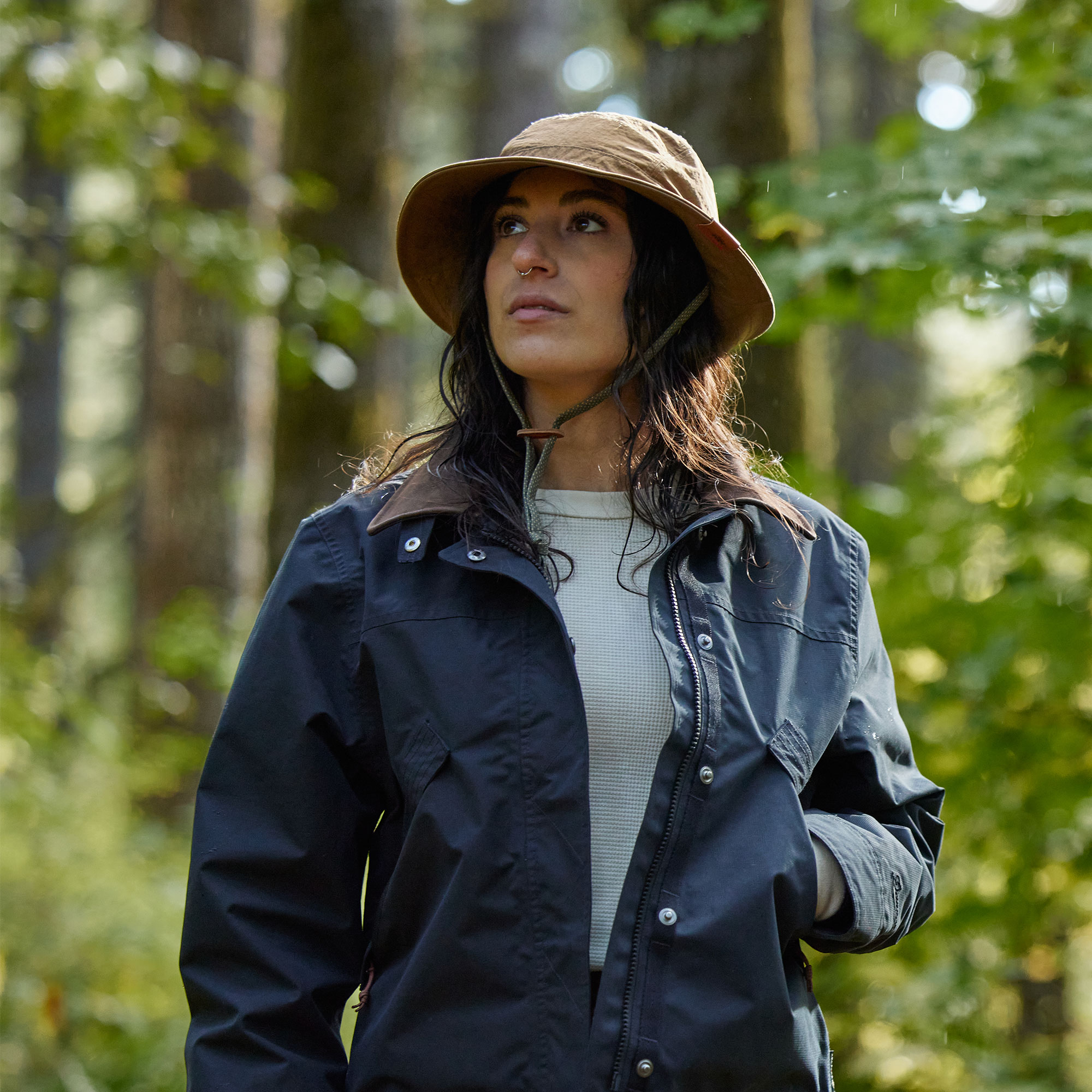 Whether you’re paddling out to sea or reaching for the peak, it’s always a good idea to keep the sun out of your eyes and the rain off your head. Our classic style, wide brimmed, waterproof Oxbow GTX Hat is the perfect solution, providing 360-degree wraparound protection from both the blazing sun and pelting rain. It’s built with water and abrasion-resistant 100% recycled nylon and lined with a breathable mesh and GORE-TEX ePE waterproof membrane that’ll keep your head and neck dry in the wettest conditions. The structured front brim makes it easy to flip up the sides for a more streamlined look. The leather toggle with adjustable neck strap made from a Danner boot lace ensures the Oxbow stays on your head when the wind picks up.