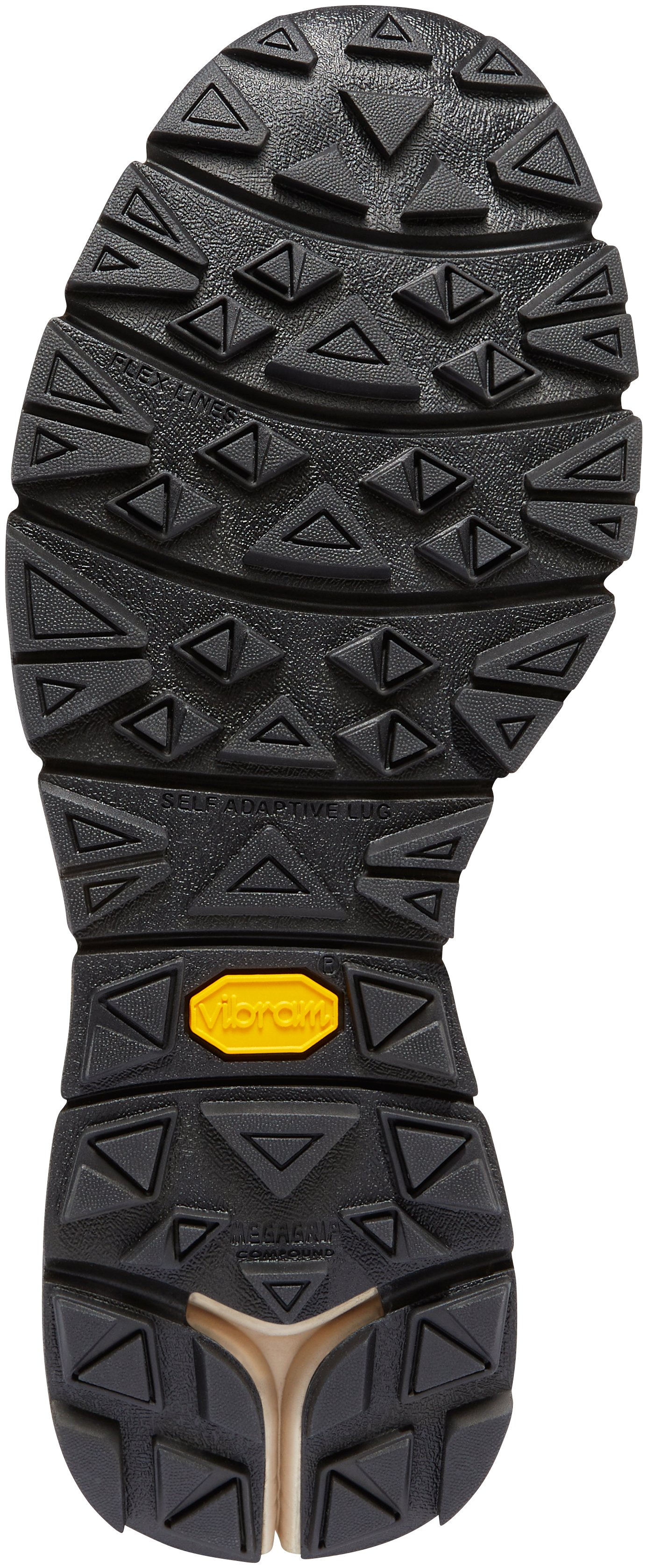 - With its self-adapting lugs and specially formulated Megagrip compound, this outsole provides incredible grip on both wet and dry surfaces.